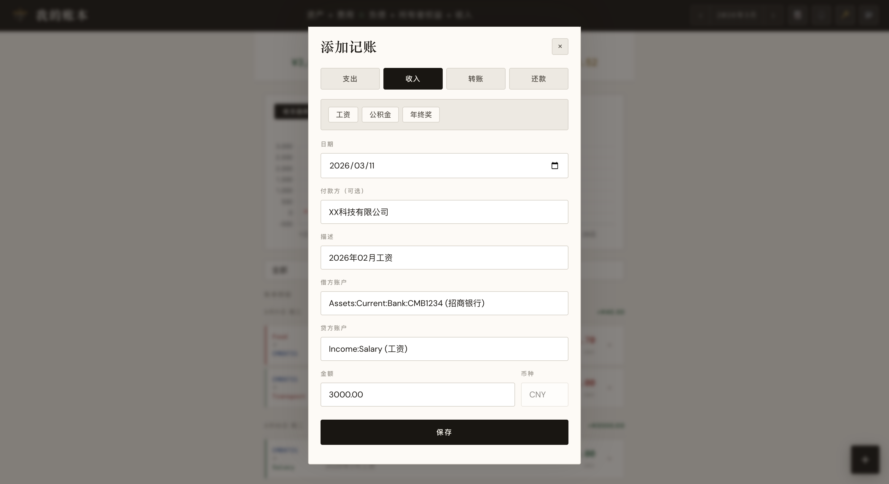 于是我决定用 Claude Code 从零做一个 专门服务于 Beancount 数据文件的轻量级 Web 应用,把这些高频操作集中到一个简单的界面里,让日常记账变得更顺手。