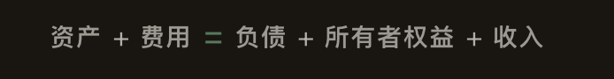 1 | 资产 + 费用 = 负债 + 所有者权益 + 收入 |
