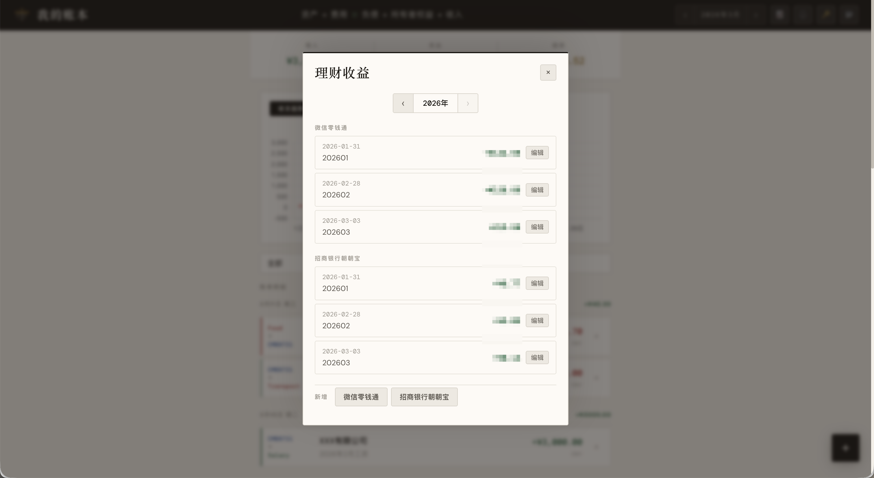 针对定期收益类记录(例如货币基金或银行活期理财),应用提供了单独的管理界面。内置常见模板,例如: