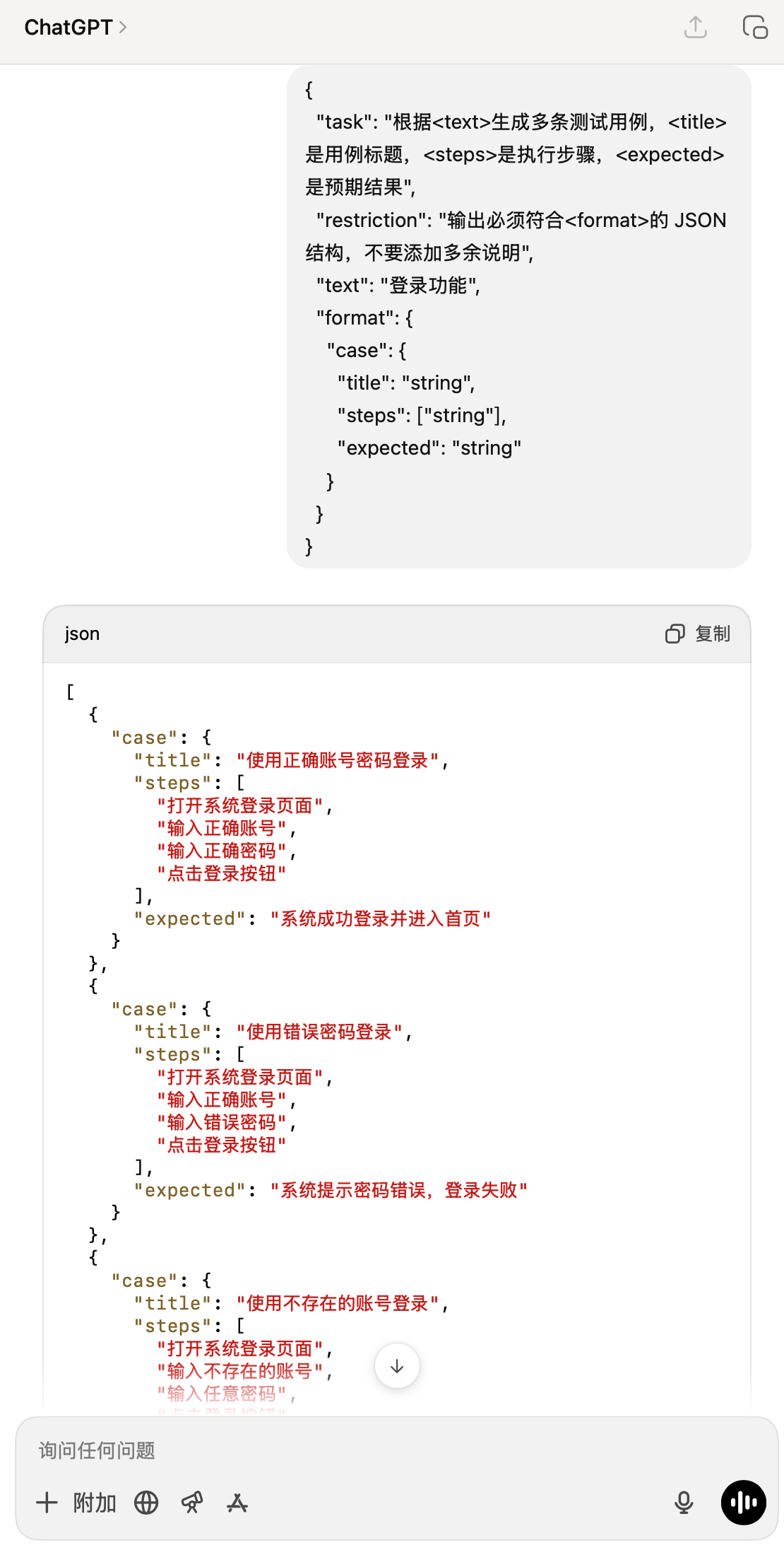 最近在使用大模型生成测试用例,流程大概是:先让模型输出结构化的JSON用例,再把JSON转换成XMind文件。