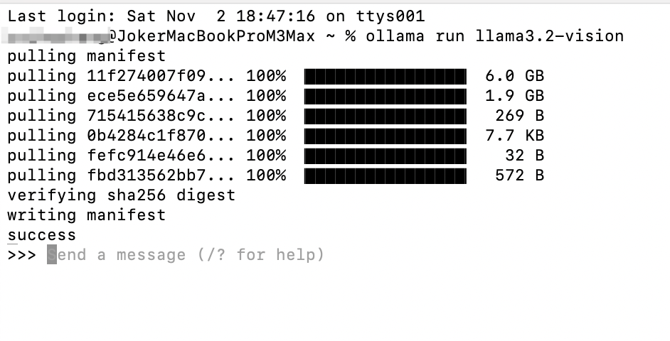 目前 Ollama 支持 11B 和 90B 的 Llama 3.2 Vision 模型,使用方式也很简单,使用 ollama pull/run 就能下载并运行模型: