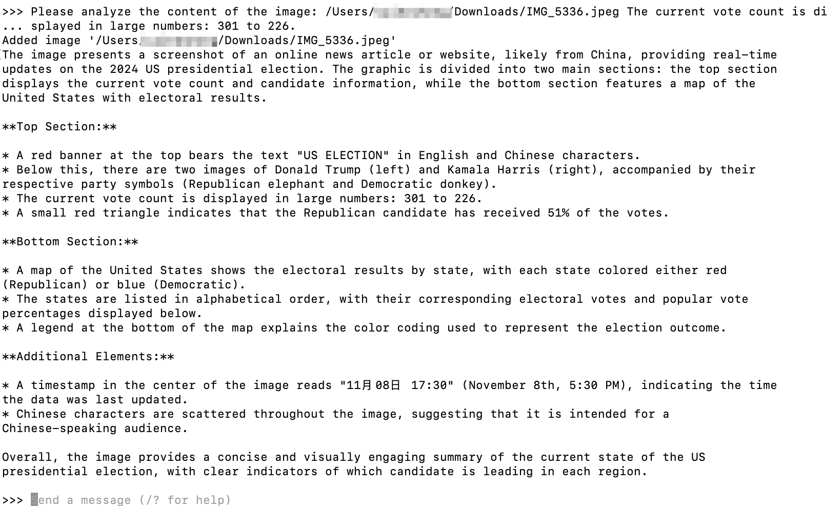 我们在终端运行Llama 3.2 Vision模型,并使用一些图像来测试大模型的视觉能力。