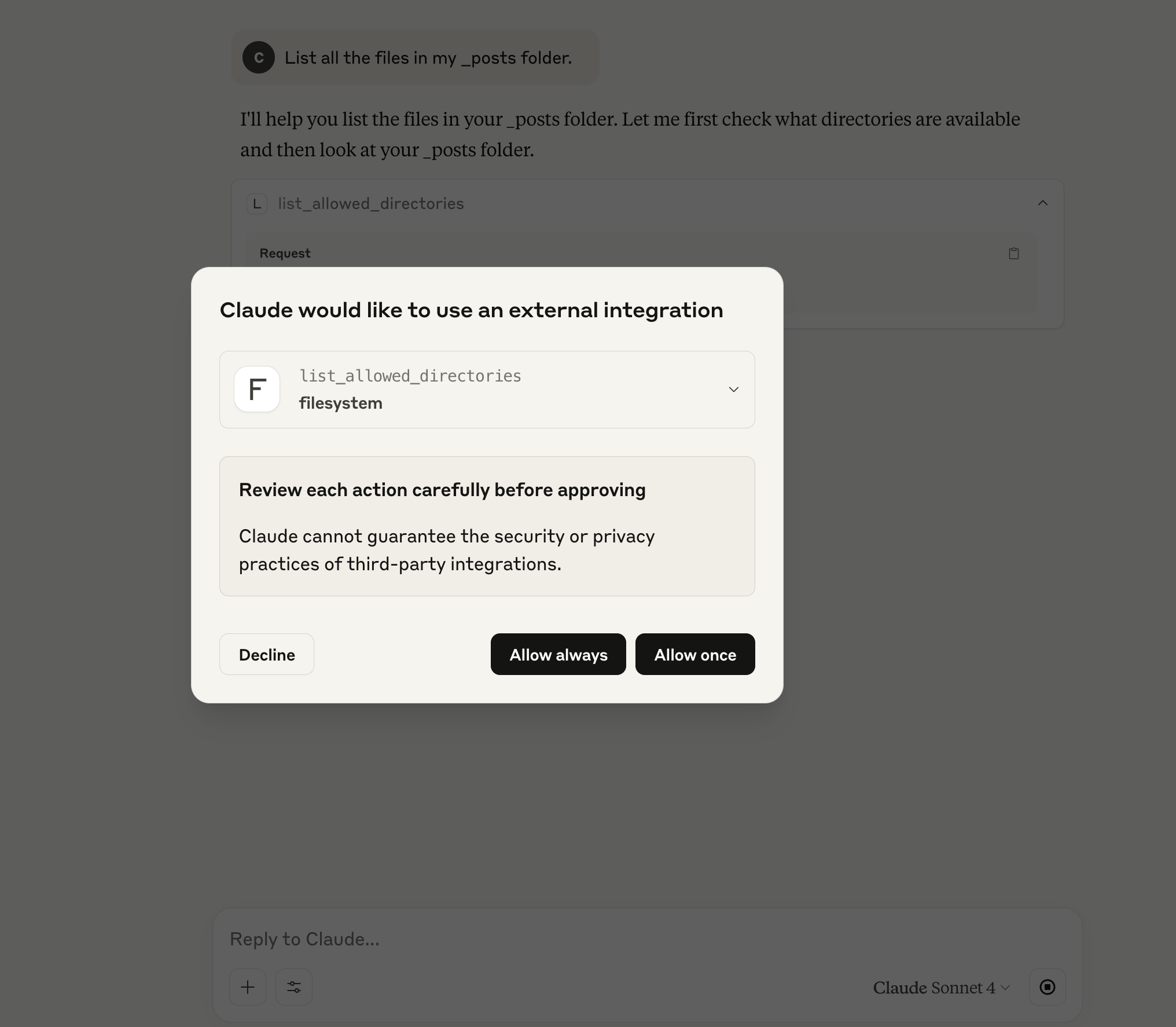 它会尝试调用 filesystem 服务的 list_allowed_directories 这个工具: