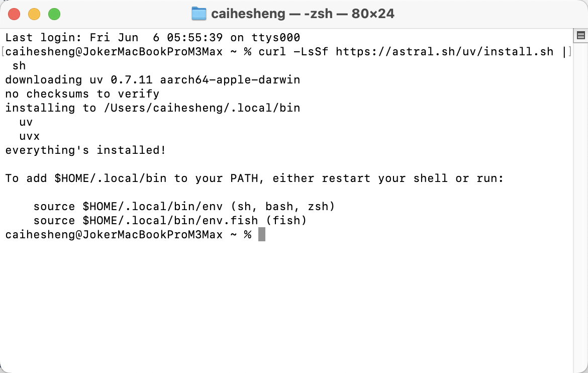 1 | downloading uv 0.7.11 aarch64-apple-darwin |