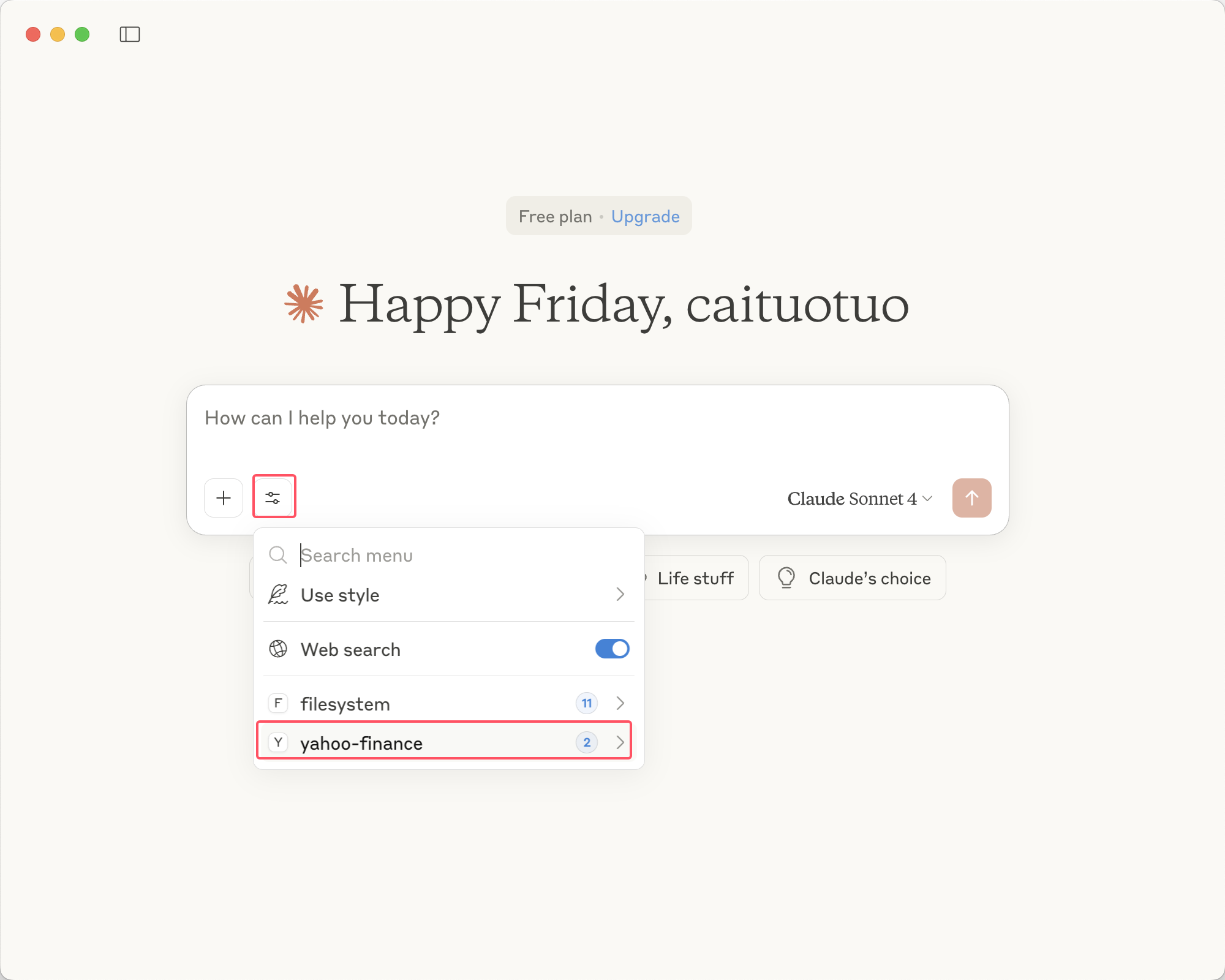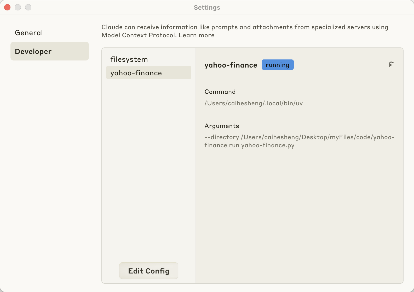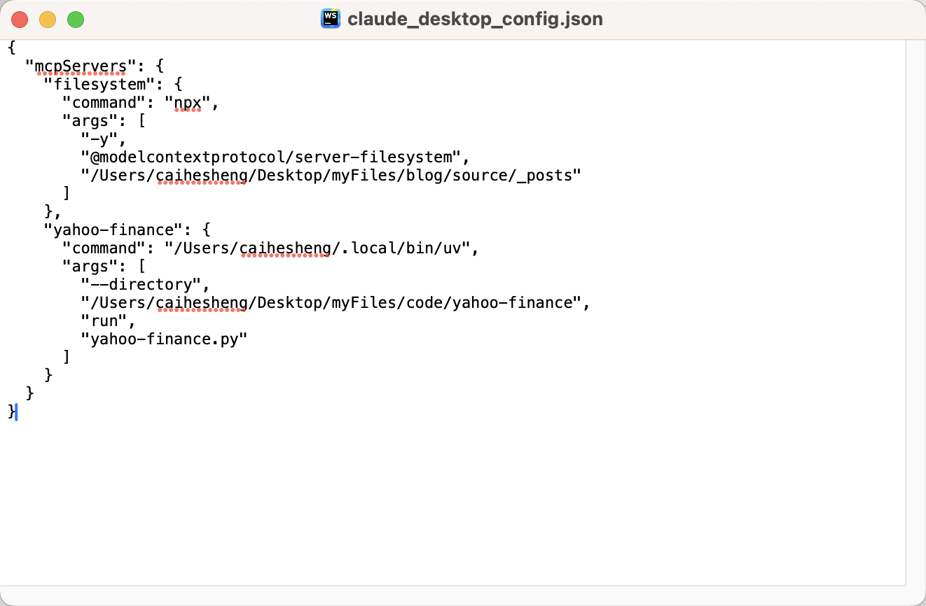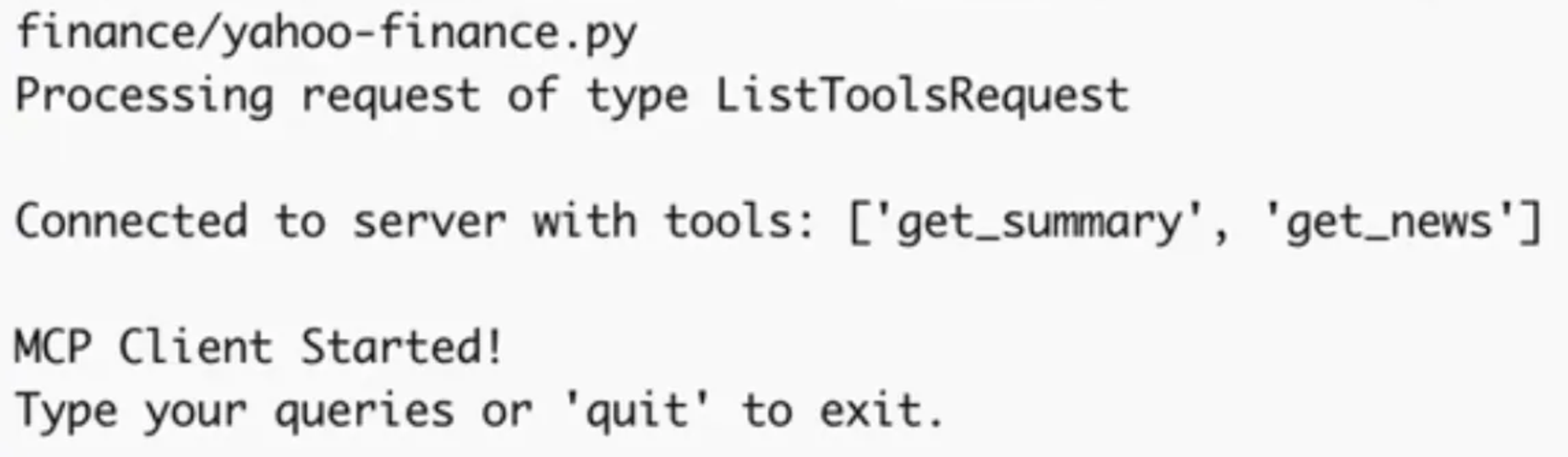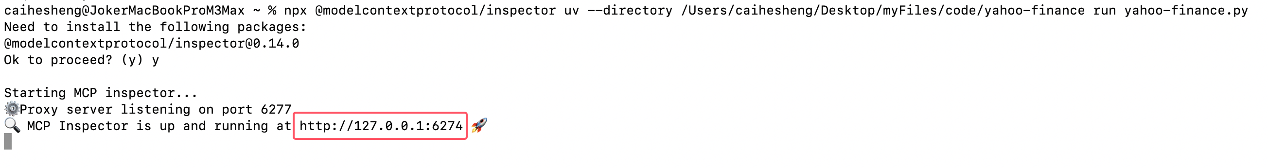 1 | uv run mcp-client.py /Users/caihesheng/Desktop/myFiles/code/yahoo-finance/yahoo-finance.py |