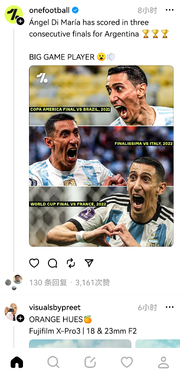 Threads整个界面非常的简洁,底部五个按钮对应着不同的功能,几乎不存在需要多次点击的二级页面,暂时没有广告。