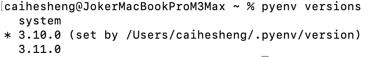 罗列当前已安装的所有 python 环境,如果是当前正在使用的环境,则前面会有个 *