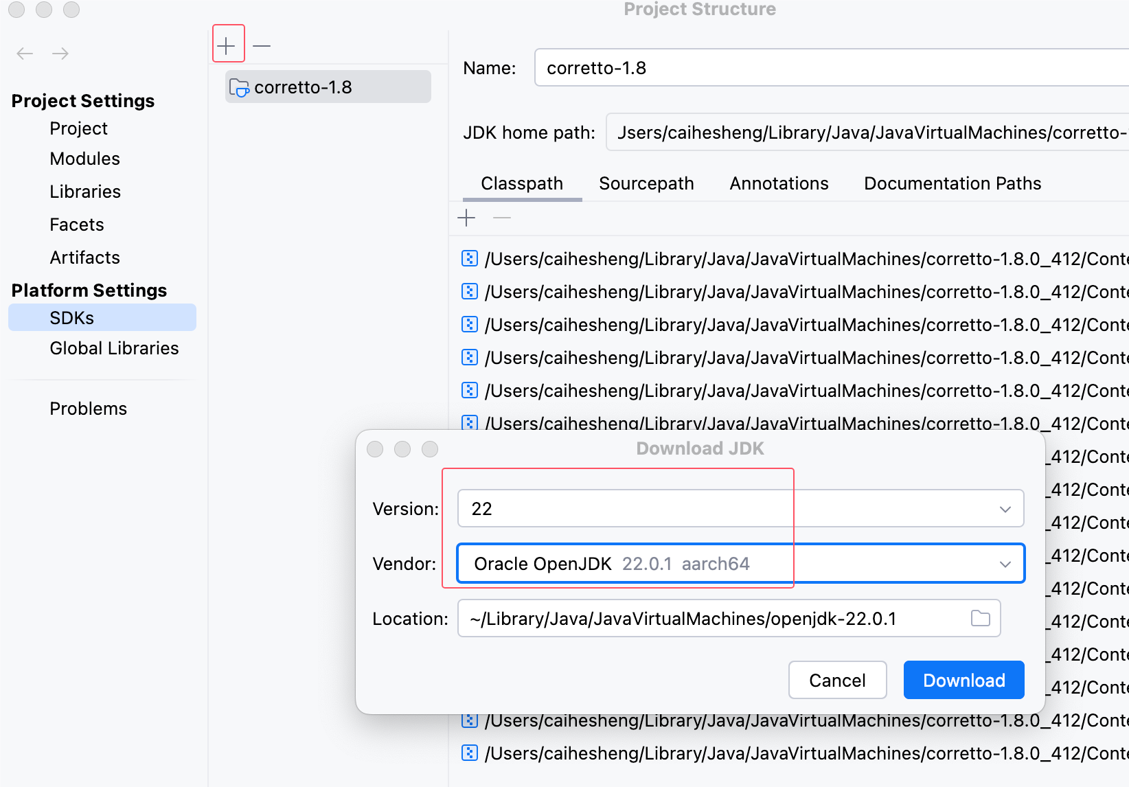 下载:先安装一个idea,Platform Setting – SDK – + – 选择版本 – 下载源 – 存储路径 – Download