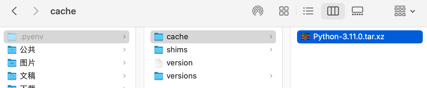 ~/.pyenv/cache目录下:重新执行下载命令,此时就会从缓存文件中读取: